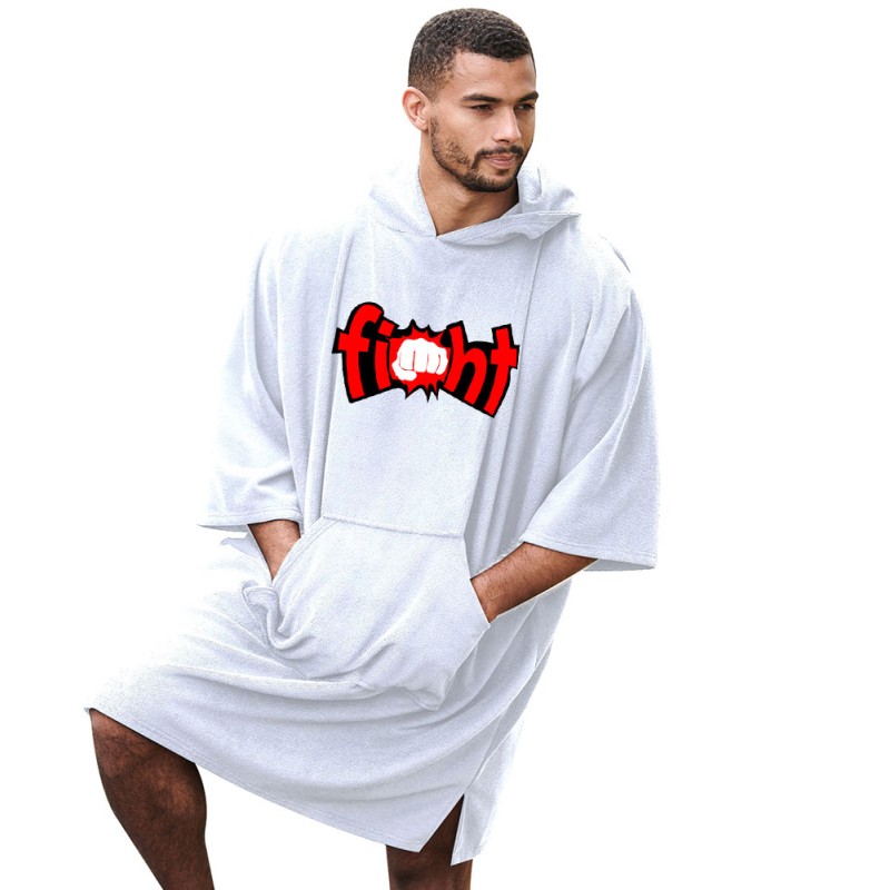 We are offering the printed Poncho with Fight Punch Hooded Poncho . This is a classic Hooded Poncho with a Front kangaroo pocket.