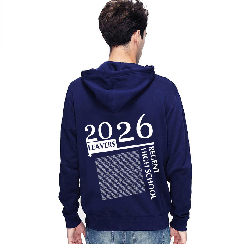 The 2026 CITY SCHOOL leavers hoodie collection we offer the classic names inside 2026 CITY SCHOOL design which is a classic varsity font with names inside the large number. You can have the back printed in one colour with the list of all the students name inside the 2026 CITY SCHOOL. The front you can have a text, logo or just keep it blank. This school leavers personalised hoodies comes in a nice SnS brand which is a durable hoodie