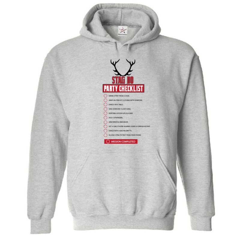 This Personalised hoodie you can have the Stag Do Party Checklist Hoodie